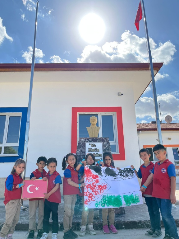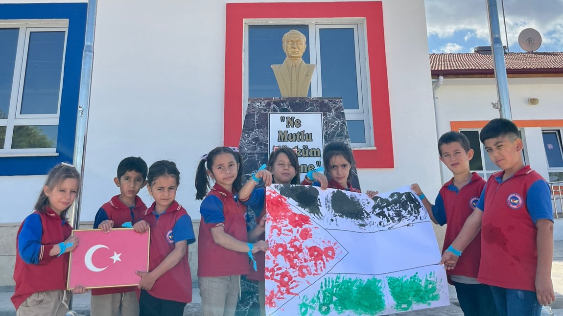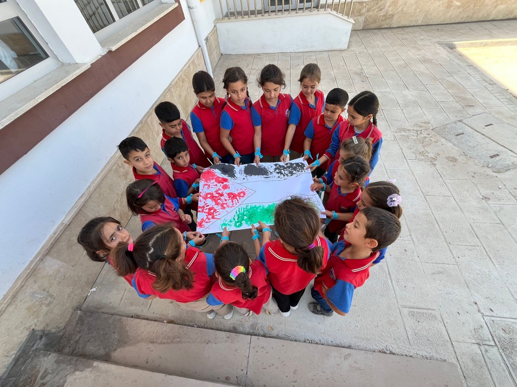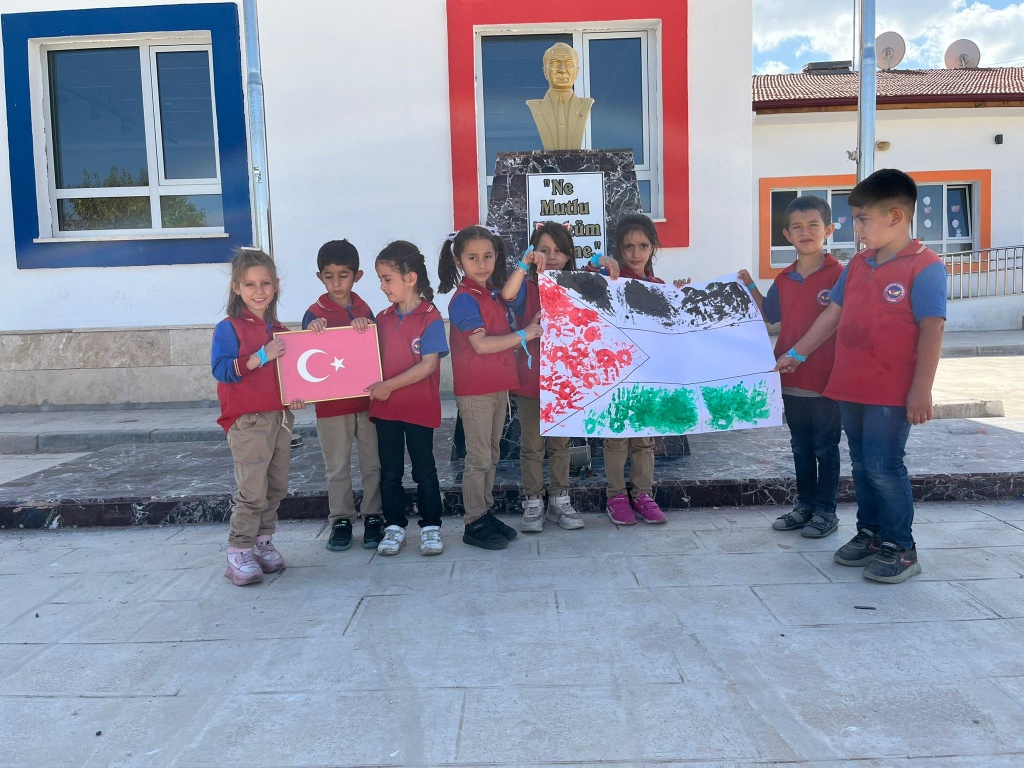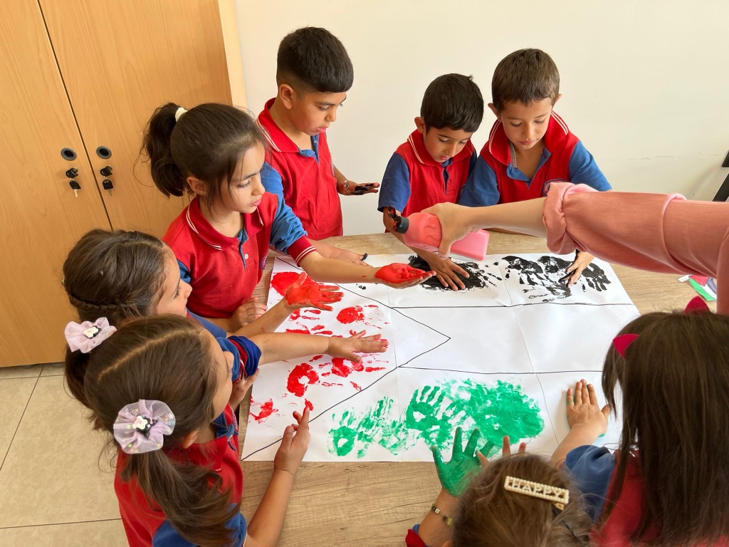 Öğrencilerimiz el baskılarıyla Filistin bayrağı hazırlayarak barış, kardeşlik ve dayanışma mesajı verdiler.